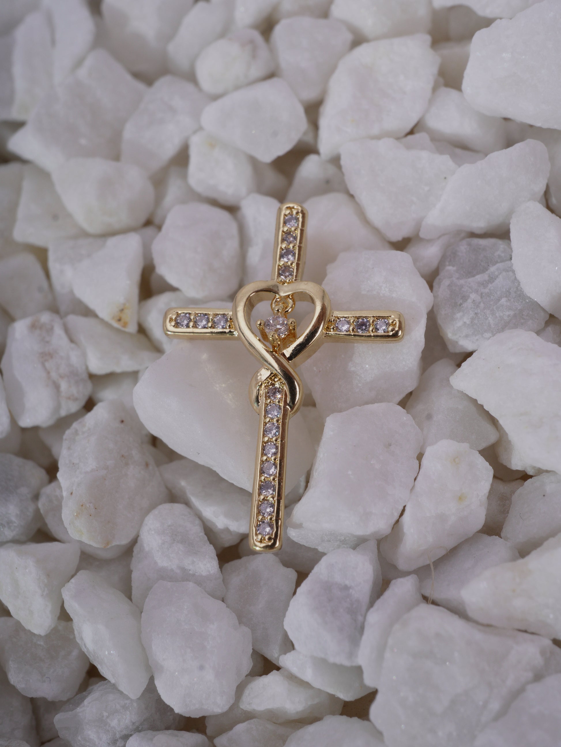 DIJE CRUZ CORAZON ENTRELAZADO CIRCONES BLANCOS